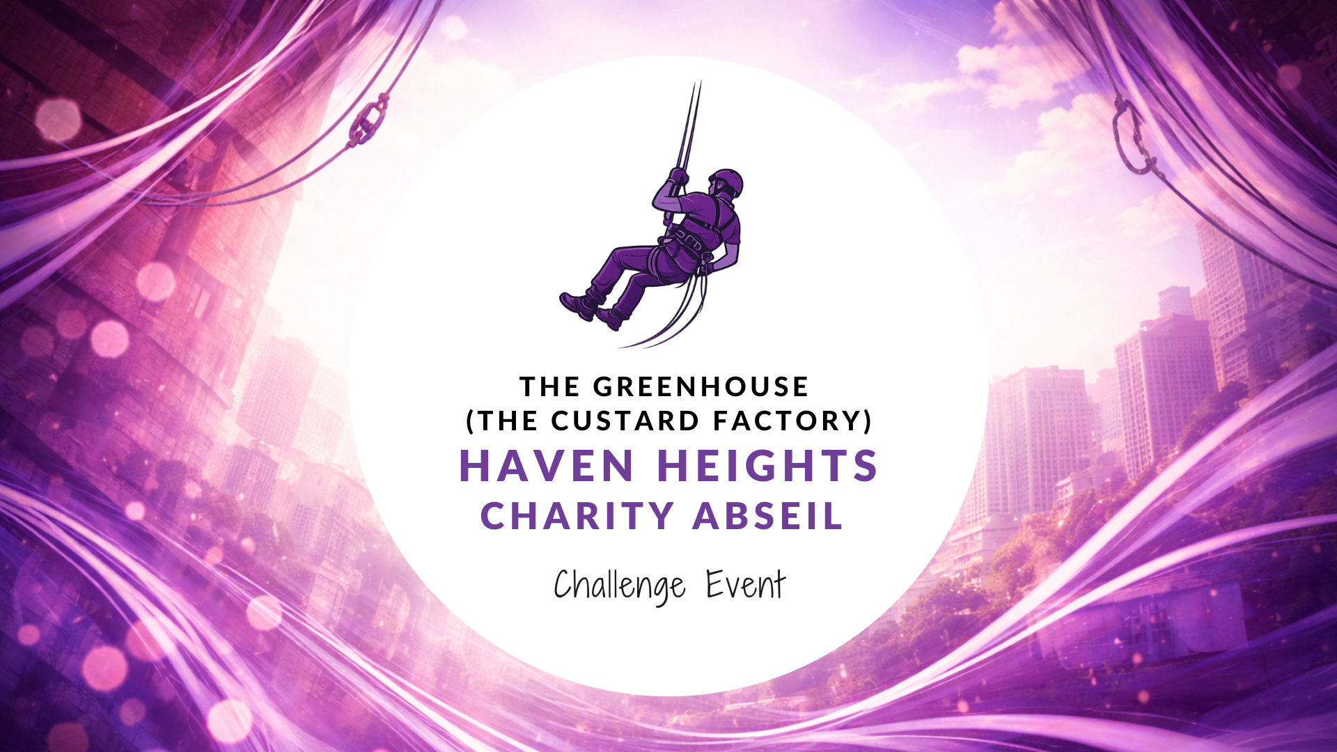 Join us for Haven Heights – Charity Abseil. This is a bold, exhilarating challenge that will see you descend 98 feet from the iconic Greenhouse at the Custard Factory, right in the heart of Digbeth. One controlled descent. One powerful act of solidarity. Lasting impact for women and children.