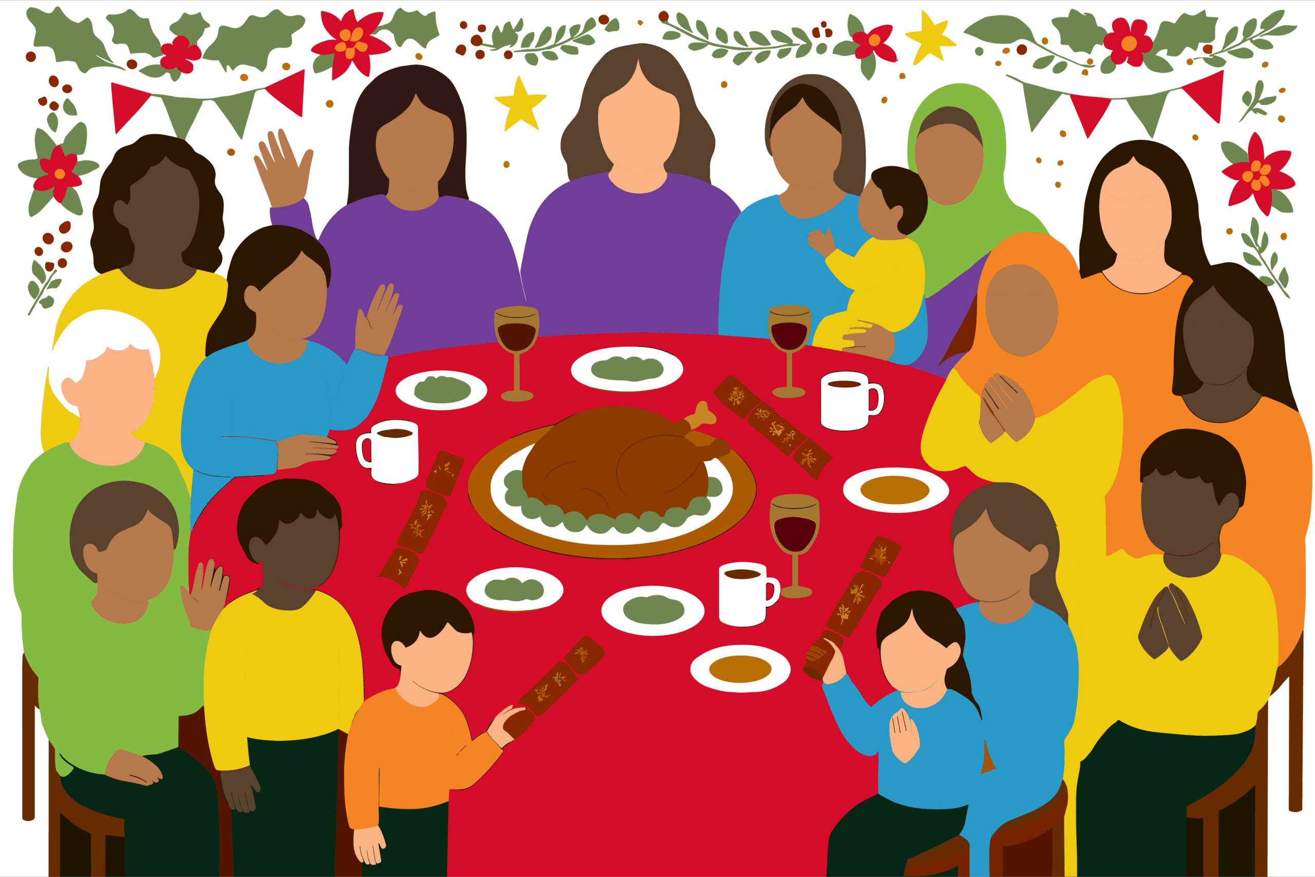 A joyful Christmas meal and party for the families,
